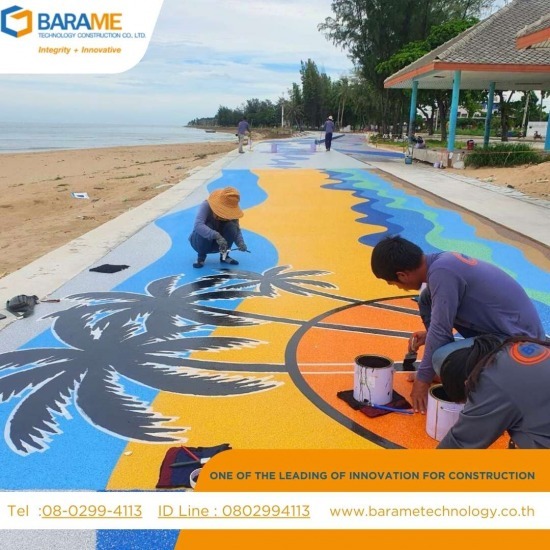 สร้างสีสันและลวดลายสวยงามด้วยพื้นโพลีไวนิล คละสี (Poly Vinyl - Color Flake) สำหรับงานตกแต่งพื้นที่ริมทะเลและชายหาด เกี่ยวกับพื้นโพลีไวนิล คละสี เคลือบแข็ง พื้นโพลีไวนิล คละสี เคลือบแข็ง (Poly Vinyl - Color Flake) คือระบบพื้นผิวที่ผสมผสานความสวยงามและความทนทานเข้าด้วยกัน ด้วยการใช้เกล็ดสีหลากสีผสมกับสารเคลือบพื้นผิว ทำให้ได้ลวดลายที่ไม่ซ้ำใคร เหมาะสำหรับพื้นที่ที่ต้องการความโดดเด่น เช่น ลานกีฬา สวนสาธารณะ ทางเดิน และพื้นที่เชิงพาณิชย์ คุณสมบัติเด่น ความสวยงามและเอกลักษณ์: สามารถออกแบบลวดลายและสีสันได้ตามความต้องการ ทำให้พื้นที่ของคุณโดดเด่นและน่าจดจำ ความทนทานสูง: พื้นผิวมีความแข็งแรง ทนต่อการสึกหรอ รอยขีดข่วน และสารเคมี ป้องกันการลื่น: ผิวสัมผัสที่ออกแบบเฉพาะ ช่วยลดโอกาสการลื่นล้ม เพิ่มความปลอดภัยในการใช้งาน ทนทานต่อสภาพอากาศ: ไม่ว่าจะเป็นแดด ฝน หรือความชื้น พื้นผิวยังคงสภาพเดิม ไม่ซีดจางหรือเสื่อมสภาพ ง่ายต่อการดูแลรักษา: พื้นผิวทำความสะอาดง่าย ไม่สะสมคราบสกปรกหรือเชื้อรา การติดตั้งพื้น โพลีไวนิล คละสีชนิดเคลือบแข็ง (Poly Vinyl - Color Flake) เป็นนวัตกรรมที่ช่วยเพิ่มความสวยงามให้กับพื้นที่กลางแจ้ง โดยเฉพาะงานออกแบบริมทะเล ชายหาด และพื้นที่ใกล้น้ำ ลวดลายที่ใช้ในงานนี้สามารถออกแบบได้หลากหลาย ทำให้แต่ละพื้นที่มีความโดดเด่น มีเอกลักษณ์เฉพาะตัว เหมาะสำหรับการตกแต่งพื้นทางเดินริมทะเล พื้นที่กิจกรรมกลางแจ้ง หรือแม้แต่ลานกีฬาใกล้ชายหาด ติดต่อเรา ที่อยู่: 608/89 ถนนลาดปลาเค้า แขวงจรเข้บัว เขตลาดพร้าว กรุงเทพมหานคร 10230 โทรศัพท์: 08-0299-4113 LINE ID: 0802994113 อีเมล: barame.vrt@hotmail.com, barame.inforcenter@gmail.com เว็บไซต์: www.barametechnology.co.th สแกนคิวอาร์โค้ด - LINE เพื่อติดต่อสอบถามข้อมูล